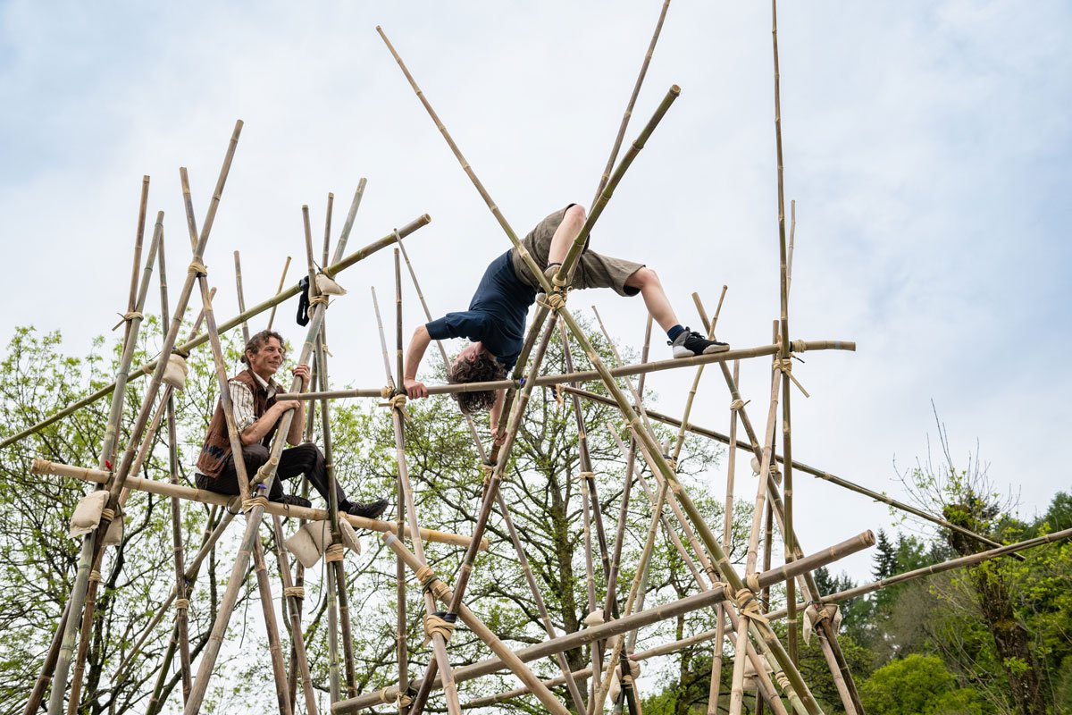 BAMBOO by NoFit State Circus is a breathtaking outdoor spectacle where circus meets sculpture in a constantly shifting landscape of movement and form. Performed entirely with bamboo and natural rubber ties, BAMBOO unfolds as a towering six-metre-high installation rises and collapses, all animated by the physical artistry of the performers. The show blends beauty, humour, and astonishing feats of strength and agility as the artists climb, swing, balance and tumble through their evolving bamboo world.