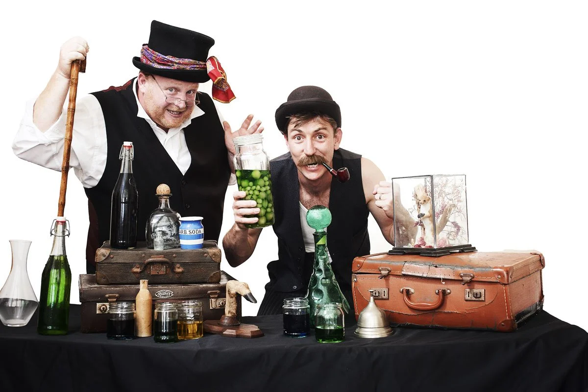 Purveyors of the finest ‘Tosh’, an elixir of youth and vitality; the esteemed intellectuals Jones and Barnard have unleashed their own brand of quackery, healing and duplicitous doctoring on an unsuspecting audience.