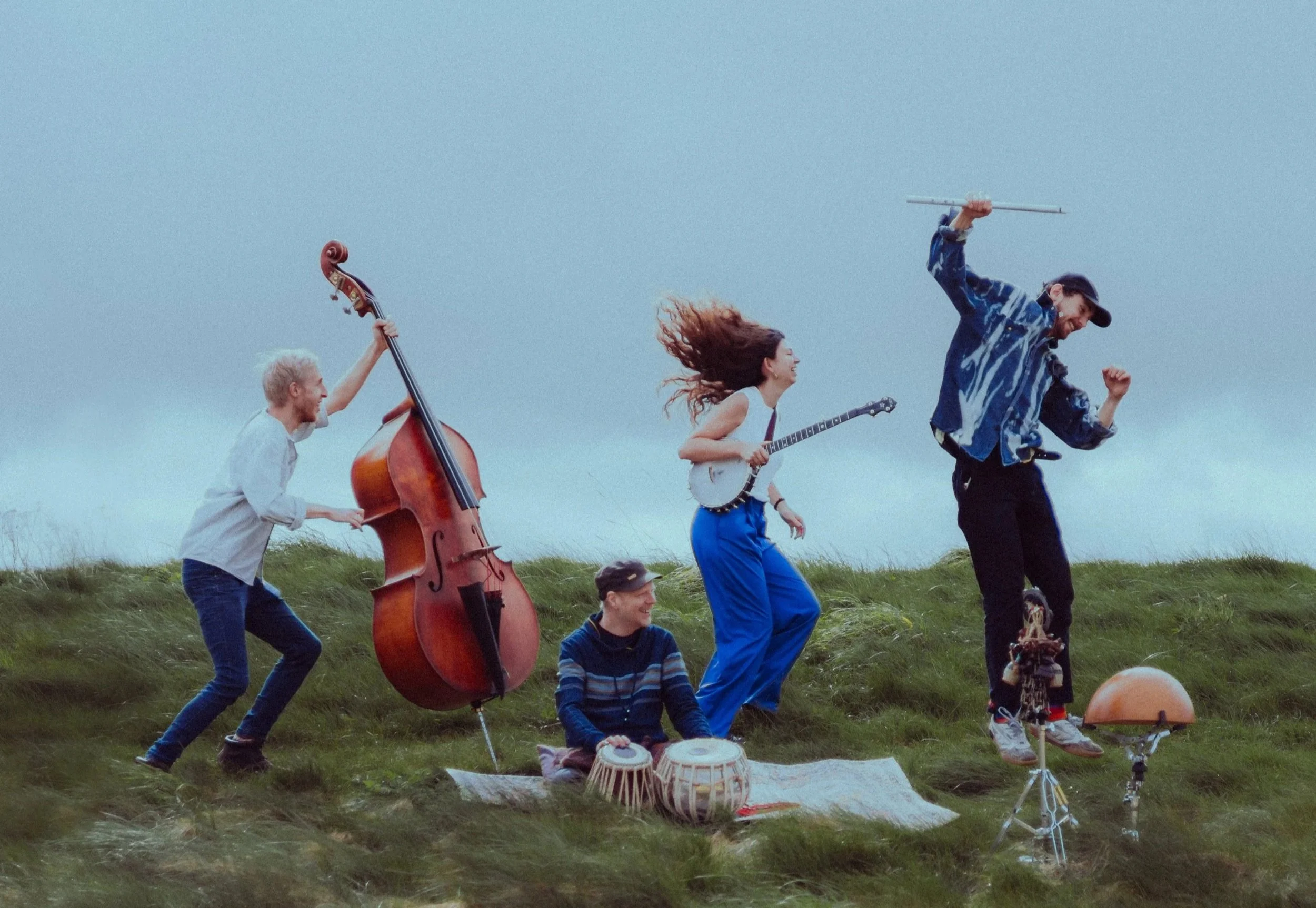 They draw on training in Indian classical, UK folk, contemporary classical, and a distinctive instrumental palette including santoor, banjo, clarinet, low whistle, double bass, and a vast array of percussion.
